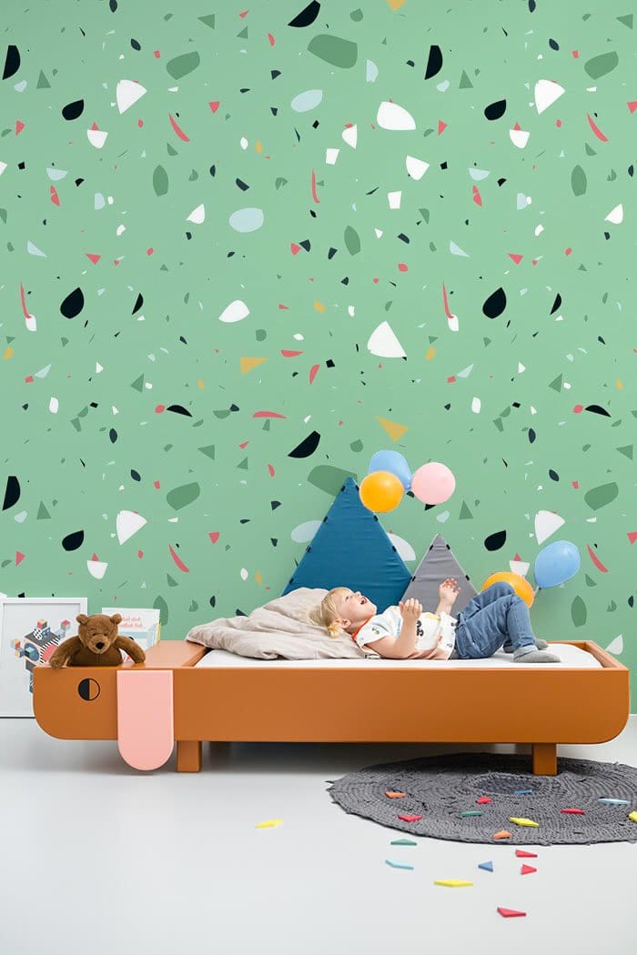 Obtenez le simple look des carreaux de terrazzo sur vos murs avec cette magnifique fresque murale verte. Ce papier peint en terrazzo vert clair à tendance créera un effet apaisant et ajoutera une grâce simple à votre salon, chambre, salle à manger, salle de bain et chambre pour enfants. Murale murale idéale qui fonctionne parfaitement avec tous les styles de meubles.