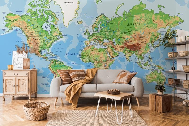 Connaître ce monde de A à Z avec ce papier peint carte murale sur mesure. Cette carte du monde tendance est un fond fantastique pour vos pièces. Tous les pays et régions ont été clairement détaillés sur cette carte. Convient à tous les endroits de votre bureau à domicile, de votre chambre à coucher et de votre couloir.